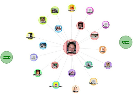 TouchGraph Photos is a Facebook app which maps your friends and their relationships using coloured bubbles (and photos when your more zoomed in). It's similar to the popular Friend Wheel app but with a slicker interface and a focus on navigating your friends' photos. They've employed the same interface in tools for exploring both Google and Amazon.