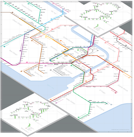 Last summer Information Architects Japan published their Web Trend Map for 2007, a subway map of the 200 most successful websites on the web, ordered by category, proximity, success, popularity and perspective.