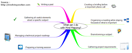 On this this post "What can I do with Mind Mapping?", The Evolving Worker Blog outlines various situations where Mind Mapping was useful. I made this map to summerize those situations.